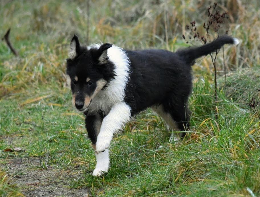 Tjelle hat die weite Reise ins neue Zuhause wunderbar gemeistert. Daheim angekommen, ist er direkt in den Garten, hat alles neugierig untersucht, und sein Geschäft erledigt. Danach gab es Futter, was natürlich gierig verschlungen wurde. Soviel neue Eindrücke machen müde, somit ist er ziemlich schnell und zufrieden in sein Körbchen eingeschlafen.