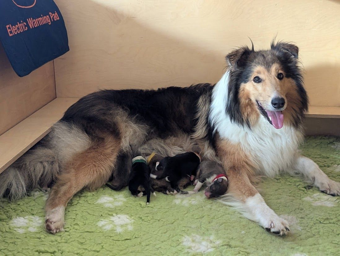 Nun ist die erste Woche auch schon schon um. Die kleinen Knutschkugeln entwickeln sich ganz toll.🥰 Sie sind super zufrieden und nehmen ordentlich an Gewicht zu. Fine ist emsig bemüht, das all ihre Kinder satt und zufrieden sind. Sie geht in ihrer Mamarolle richtig auf❤️. Oma Hedda darf noch noch nicht ins Welpenzimmer, das wird sich sicher bald ändern.