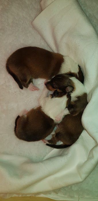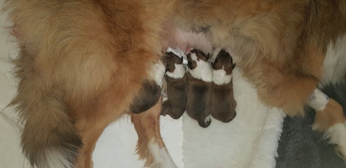 Nach 4 durchwachten Nächten hat Hedda gestern am 23.04.2020 durch einen Kaiserschnitt 6 Welpen bekommen.