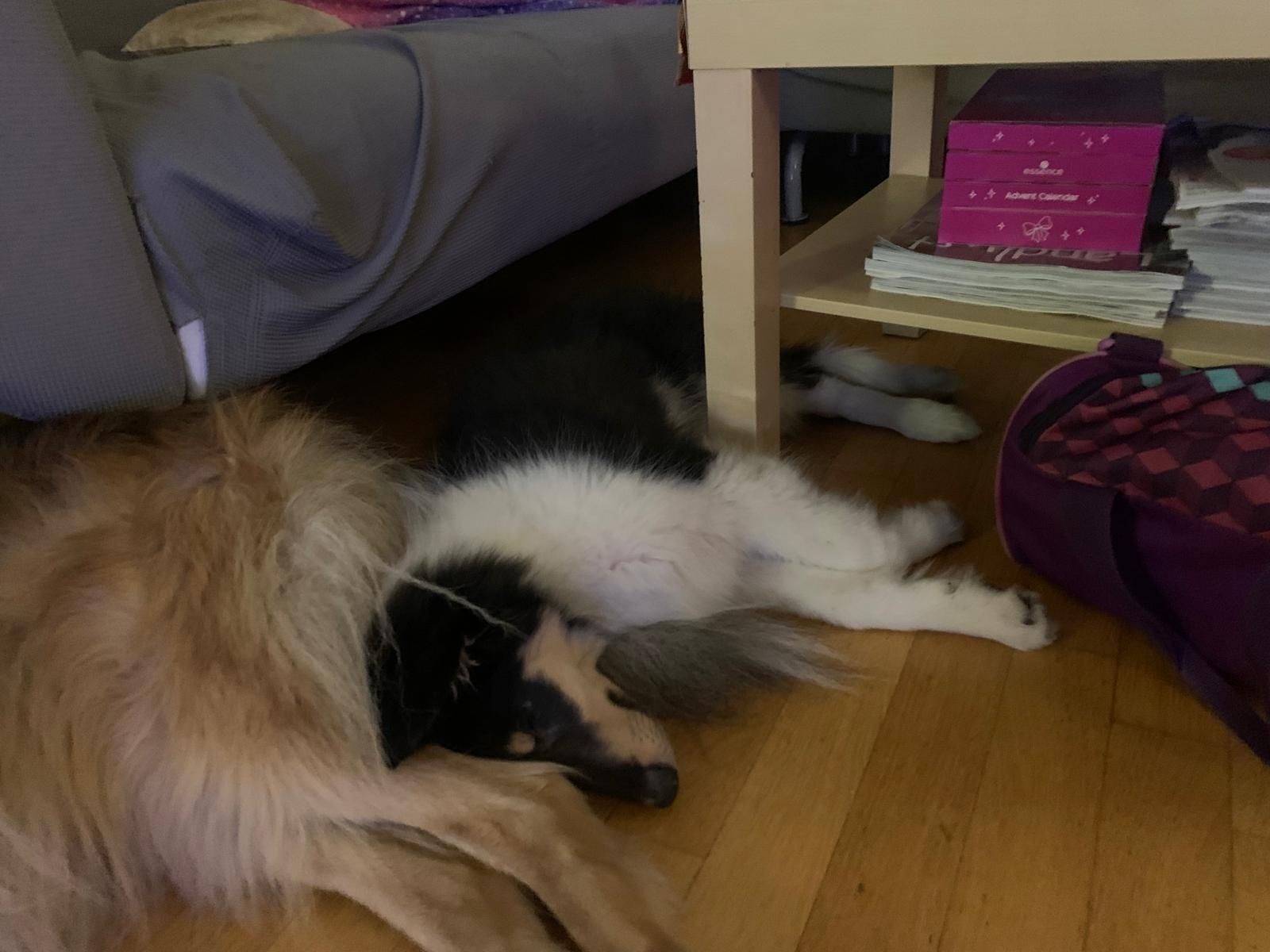 Auf der Rückfahrt hat Diego erst geweint, ab Auffahrt Autobahn hat er dann aber ruhig bei den Kindern gelegen und geschlafen. Im neuen Zuhause angekommen, hat Diego zuerst den Garten neugierig und mutig erkundet. Danach hat er direkt seinen großen Bruder ein Spiel aufgedrängt, und zu guter Letzt hat er dem Carlos auch noch sein Rinderohr geklaut.
