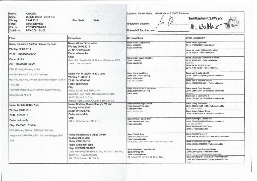 AVK 96,70% ( ein doppelter Ahne über 4 Generationen)