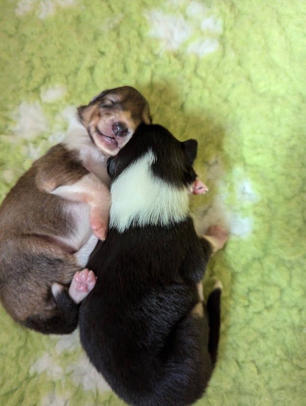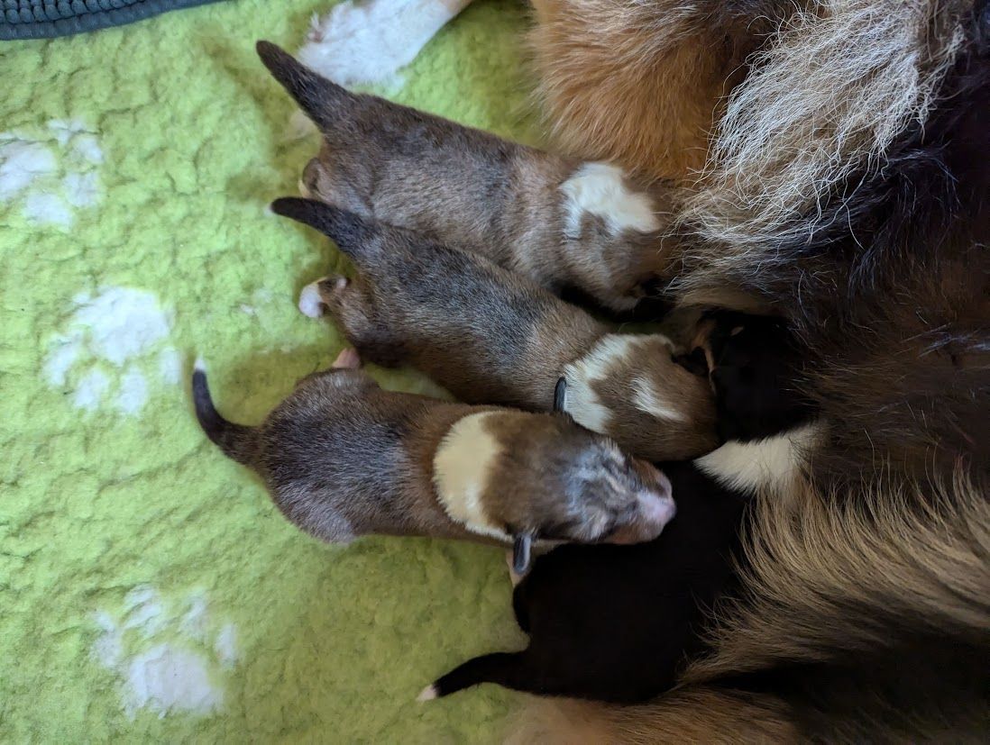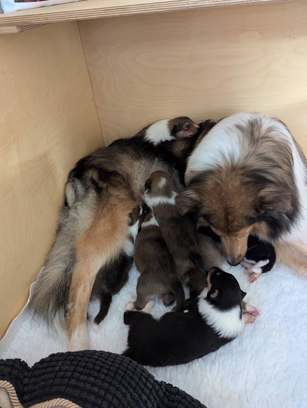 Nun ist die erste Woche auch schon schon um. Die kleinen Knutschkugeln entwickeln sich ganz toll.🥰 Sie sind super zufrieden und nehmen ordentlich an Gewicht zu. Fine ist emsig bemüht, das all ihre Kinder satt und zufrieden sind. Sie geht in ihrer Mamarolle richtig auf❤️. Oma Hedda darf noch noch nicht ins Welpenzimmer, das wird sich sicher bald ändern.