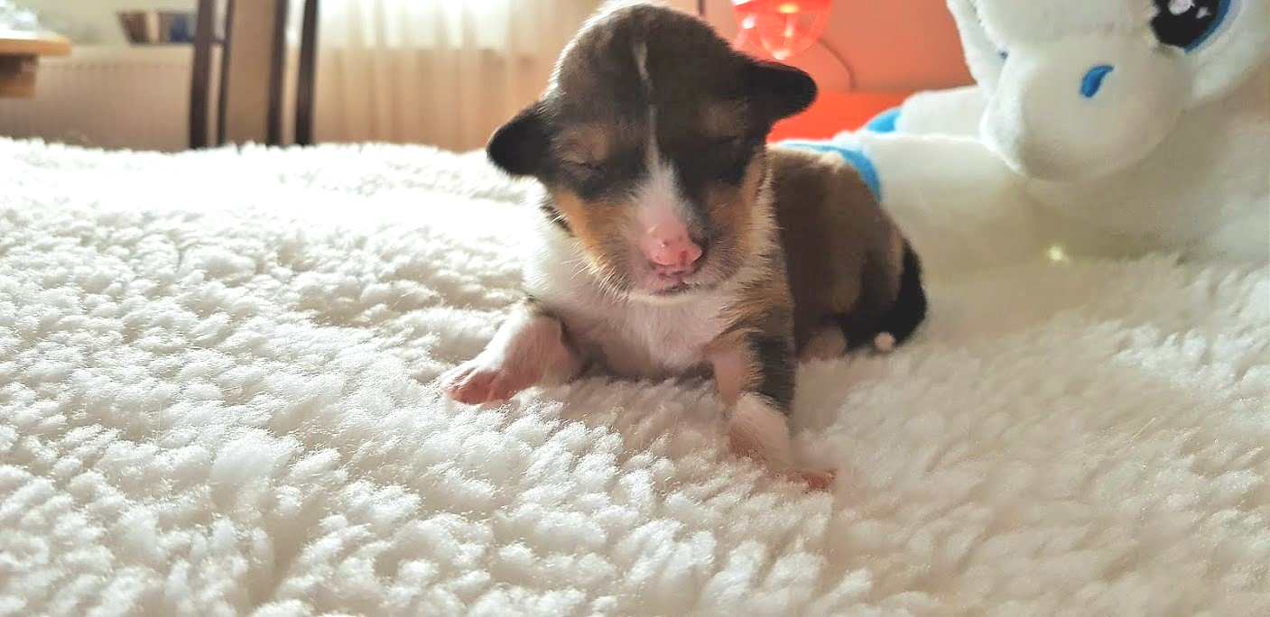 Nun werden die Welpen täglich agiler und wollen auf Erkundungstour gehen. Zum Ende der Woche haben wir die Wurfbox geöffnet und kleinen Auslauf angebracht der nun von Zeit zu Zeit vergrößert wird.