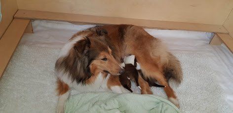 Nach 4 durchwachten Nächten hat Hedda gestern am 23.04.2020 durch einen Kaiserschnitt 6 Welpen bekommen.